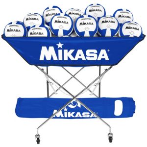 The Mikasa hammock ball cart holds 24 inflated volleyballs. Steel frame with improved heavy duty wheels. Collapsible for easy storage. Includes matching nylon carrying bag with adjustable shoulder strap. Balls not included.